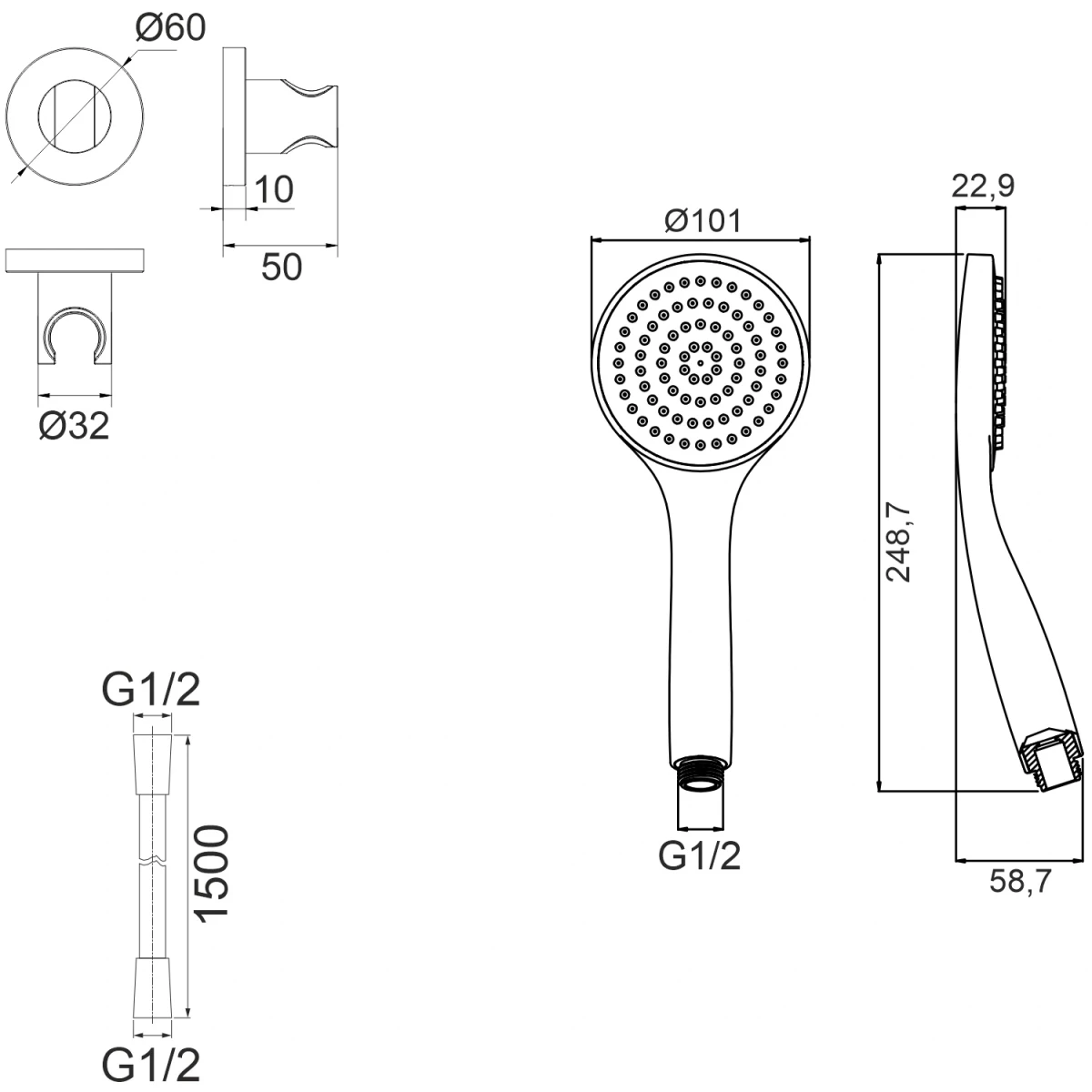 Душевой гарнитур Whitecross SET50BASICBL 1 режим, черный матовый