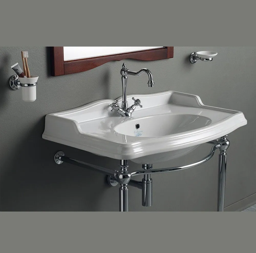 Раковина поставляется с керамическими ногами GB001, металлической консолью для раковины ARCG1, керамическими кронштейнами для раковины MNSLEN и металлическими кронштейнами для раковины MNSAR.