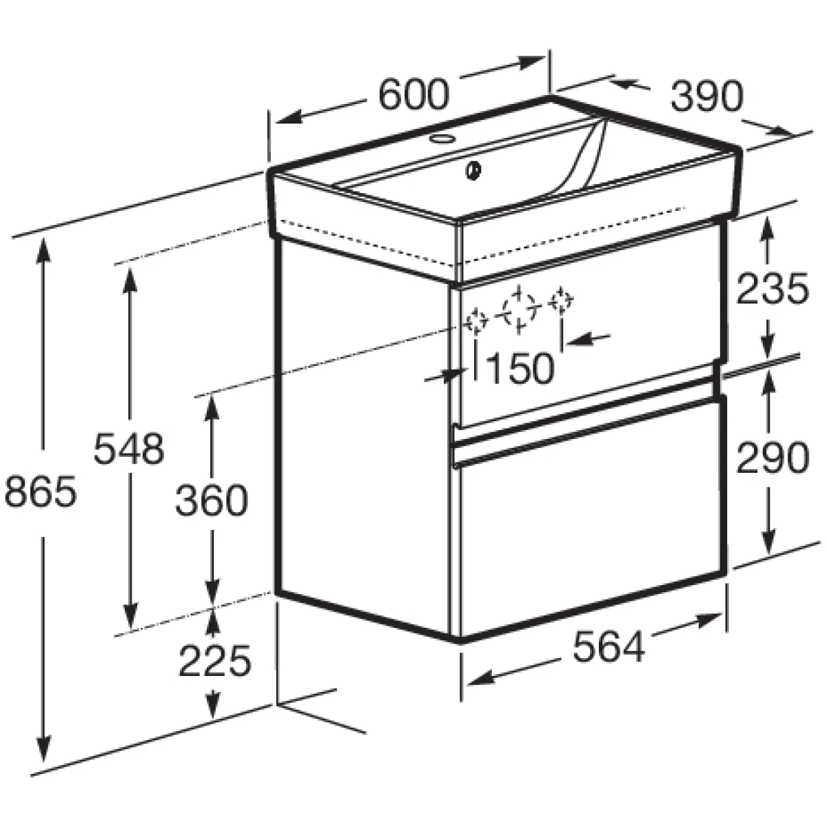 - Размеры корпуса тумбы (ШхВхГ): 564х548х374 мм.